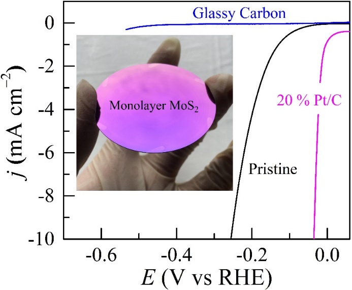 采用激光分子束外延工艺,在超高真空和高衬底温度的生长条件下,制备了具有优异电催化性能、富含硫空位的晶圆级(2英寸)连续单层二硫化钼薄膜,该材料的创新制备工艺为二维过渡金属硫化物在大规模制氢中的工业化应用奠定了坚实的基础。论文发表在Nature Index 期刊Journal of Physical Chemistry Letters, 2019, 10, 4763。