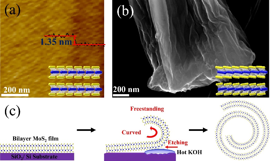 利用应力剥离法代替传统的机械堆叠方法,设计合成了转角可自由调制的二硫化钼莫尔超晶格结构,成功地降低了层间势垒和提高了层间电子传输效率,并理论计算和实验验证了其显著增强的析氢反应机制。论文发表在ACS Energy Letters, 2019, 4, 2830(影响因子16.331),论文在线发表当月即成为Most Read Article。